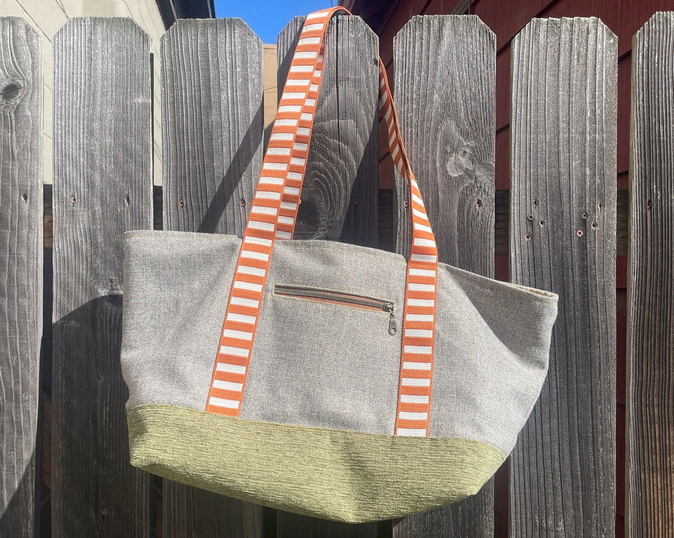 Sew your own, one of a kind, lined market tote. This durable, fashionable bag contains pockets, a zipper, and a sturdy shoulder strap. A great gear bag for a day at the beach or on the boat. All materials are included.