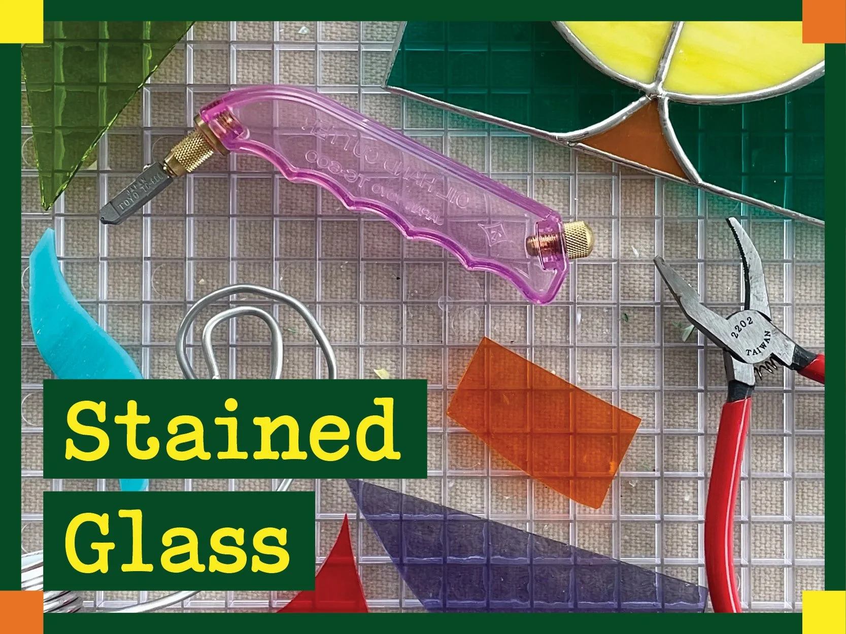 Join us for a week of fun making stained glass art! You’ll learn how to cut, grind, foil, and solder glass to create one of a kind pieces. From two-dimensional panels and picture frames to three-dimensional plants and boxes, there are endless possibilities of what you can make with stained glass. No experience required to sign up. All materials are provided.